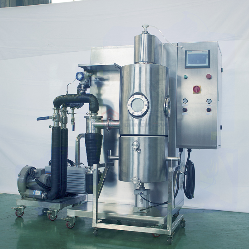 QFN-FSD-1實驗室噴霧冷凍干燥機對比傳統(tǒng)凍干機:能對易粘壁、含有機物的液態(tài)物料進行快速凍干(果汁、中藥浸膏等),且干燥后的成品呈顆粒狀態(tài),流動性好,顆粒粒徑在一定范圍內(nèi)可調(diào)。