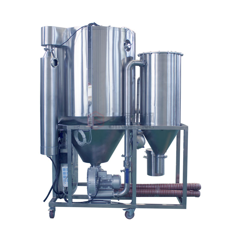 本款噴霧干燥機(jī)由七個(gè)系統(tǒng)組成,即供料系統(tǒng)、霧化系統(tǒng)、干燥塔、物料回收系統(tǒng)、加熱系統(tǒng)、管道系統(tǒng)和控制系統(tǒng)。